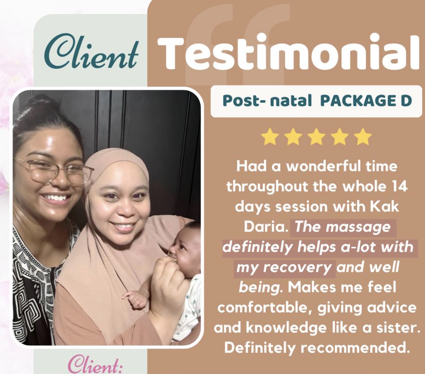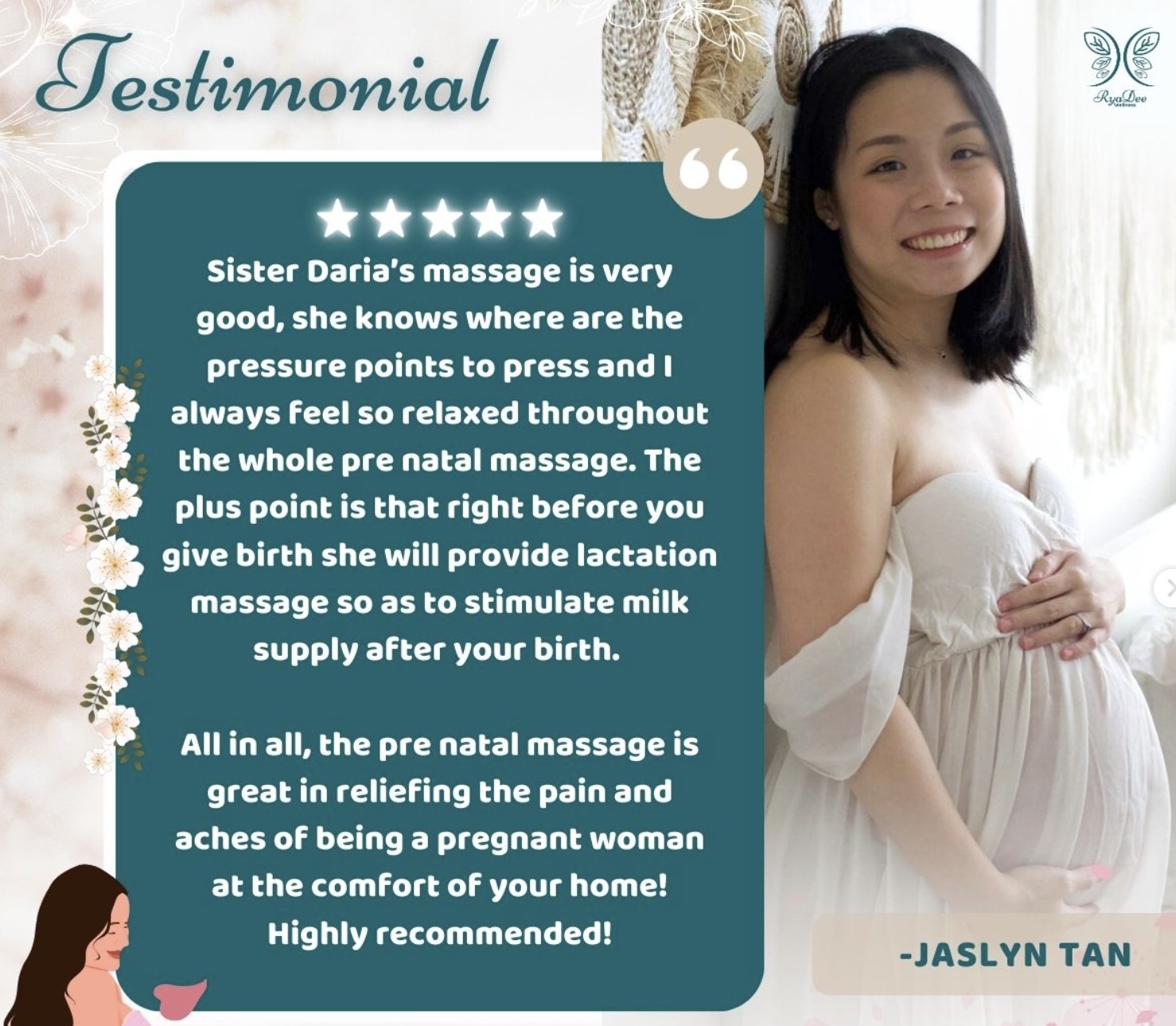 Our mission is to nurture and support women through every stage, providing a sanctuary of relaxation and rejuvenation. We specialize in prenatal, postnatal, fertility, and general women’s wellness massage, delivered with expertise and compassion.
